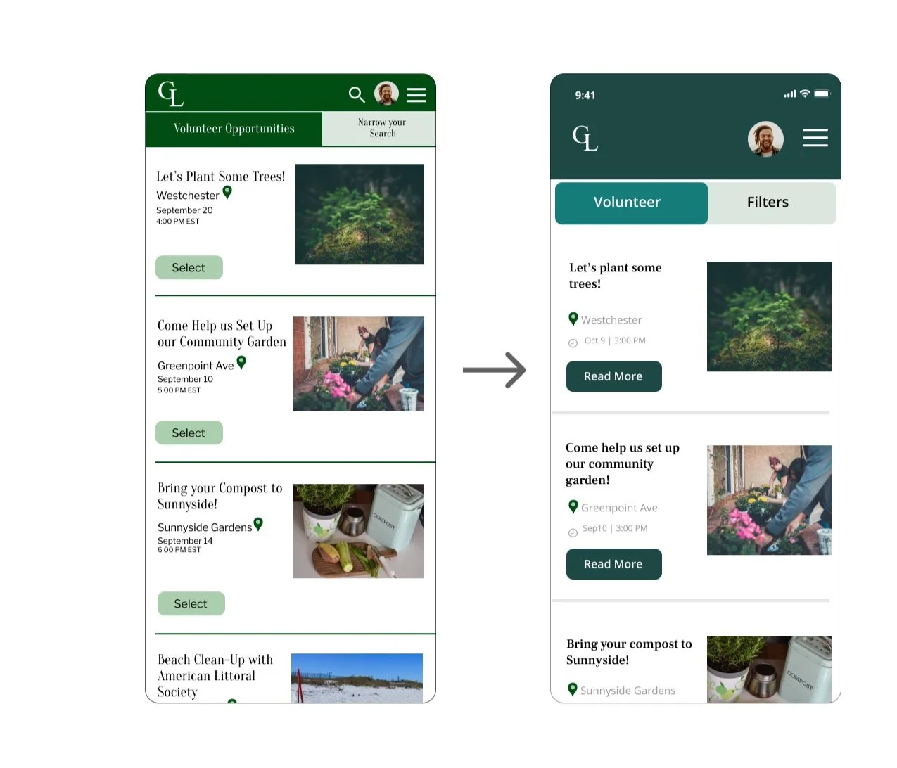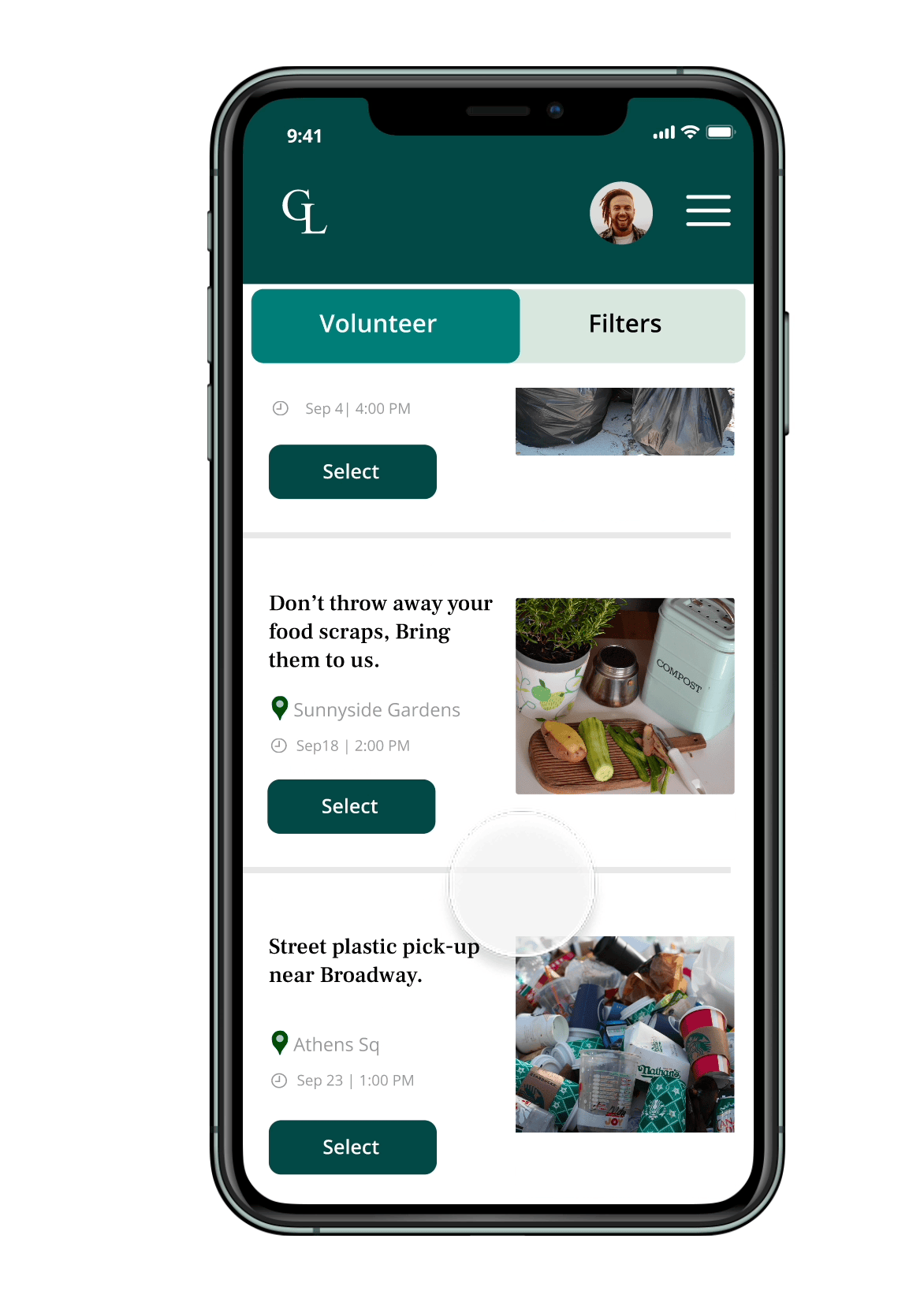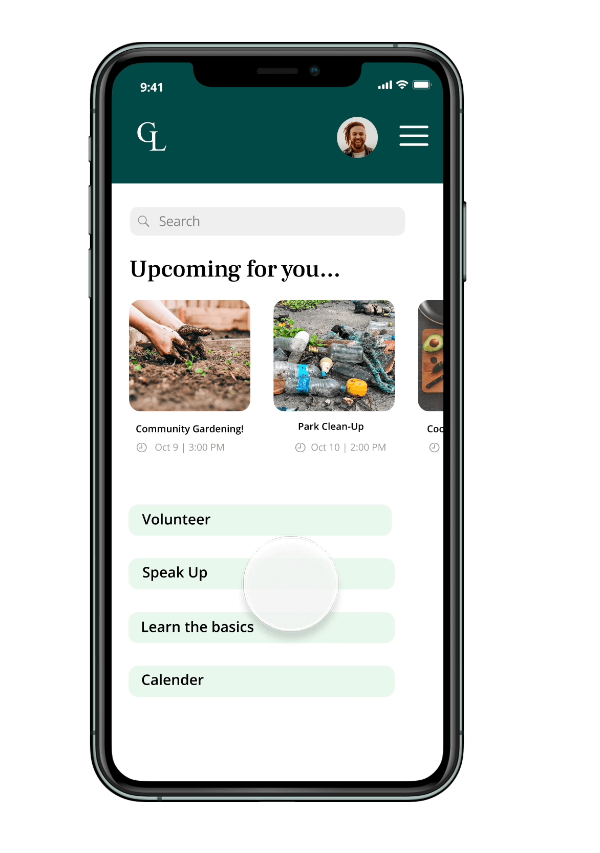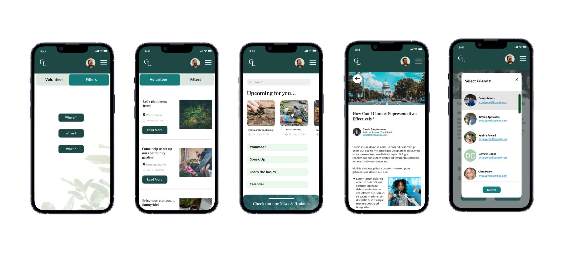 With Green Light, you can share events and opportunities with friends for further community involvement.